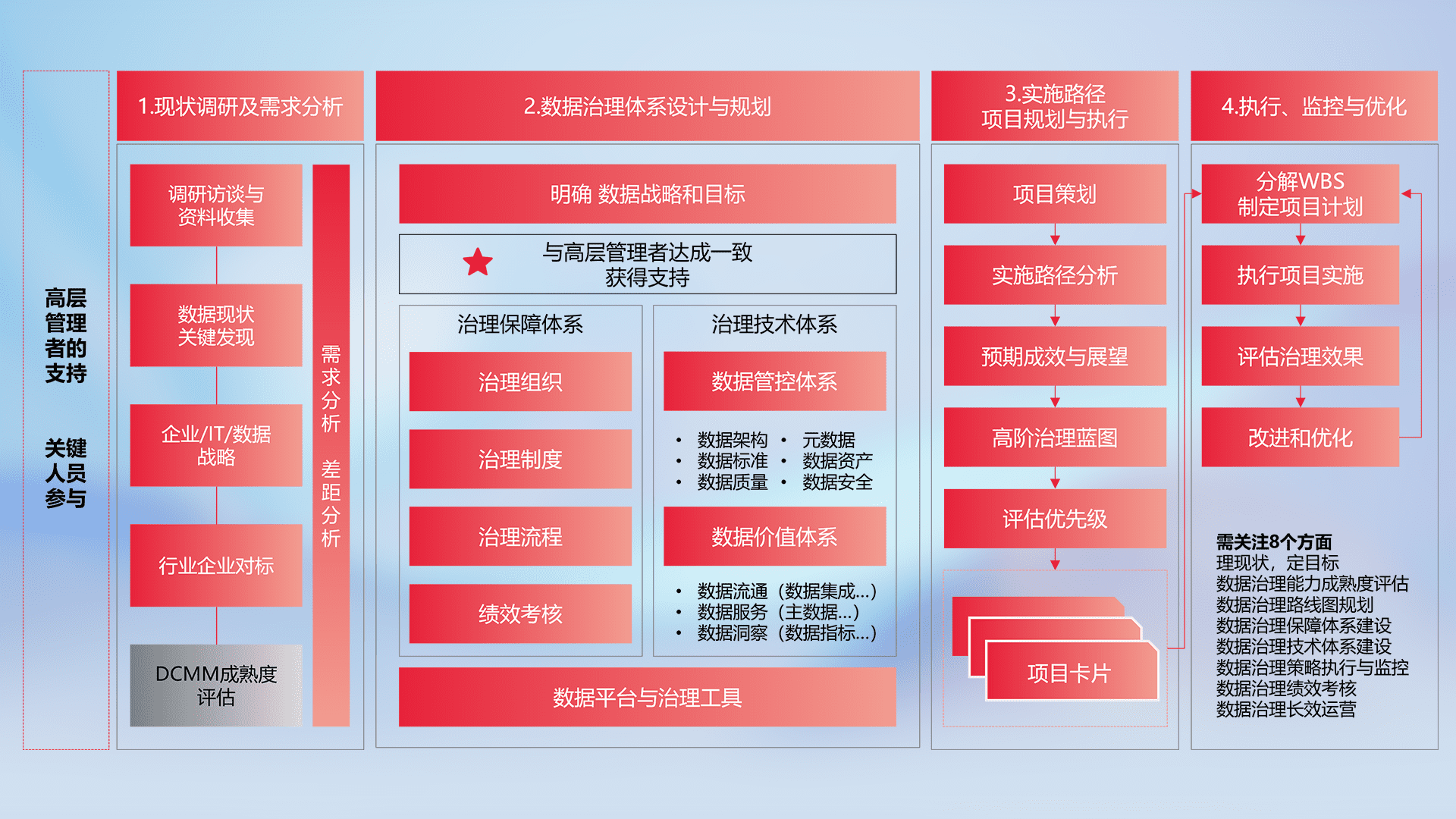 制定并执行统一的数据标准,,,,规范数据定义和格式,,,消除冗余和不一致性,,,实现跨部门和跨系统的数据一致性,,为企业提供标准化的数据基础。。。